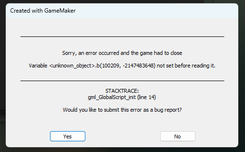 I really encourage people releasing GameMaker games to use some way of easily collecting bug reports. If you have a game you're releasing and would like my help to make sure that your game has a way to collect bug reports, reach out to me on Twitter or find me on the GameMaker discord