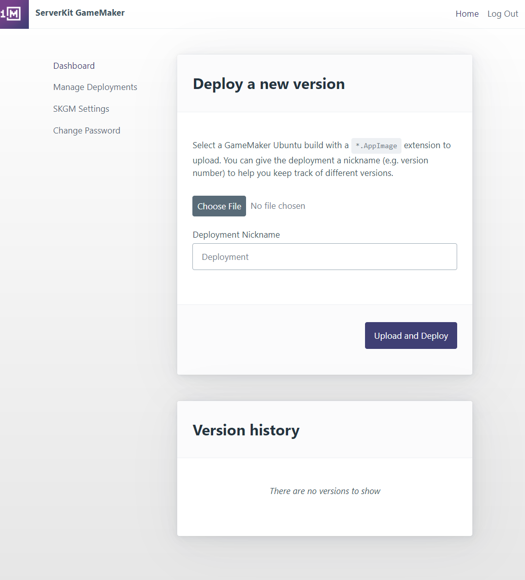 In the Deploy a new version section, you can select your gamemaker server that you want to deploy, in *.AppImage format. This is what you get if you do an Ubuntu Build from the IDE.