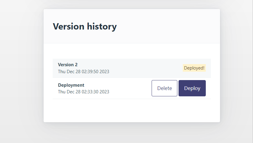 In the future, if you have a new version of the server, you can upload a new version in the Manage Deployments section. And if you need to roll back to a previous version, you can do it from there too, since the old version will show up in the Version history section